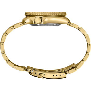 Experience the sophistication of the Seiko 5 Sports SRPK20, a U.S. special creation that blends sport and dress styles seamlessly. Powered by the 24-jewel Calibre 4R36 automatic movement with manual winding capability and a 41-hour power reserve, this gold-finished stainless steel timepiece features a black dial, luminous hands, and a day/date calendar. A gold uni-directional rotating bezel and a screwdown see-through caseback enhance its functionality and charm. With 100M water resistance and a tri-fold push-button release clasp, this watch offers timeless appeal and cutting-edge design.