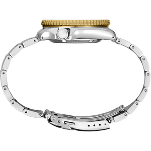 Enhance your look with the Seiko 5 Sports SRPK24, a versatile men's watch featuring a brown dial, silver stainless steel case, and a two-tone gold and silver strap. With 100M water resistance, a 42.5mm case, and a reliable analog movement, this watch combines sporty sophistication with everyday functionality. A perfect blend of style and performance for modern men.