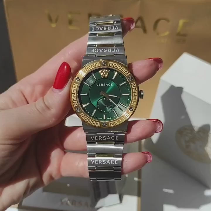 Versace VEVI00420 Men's Watch Greca Two-Tone Green Dial